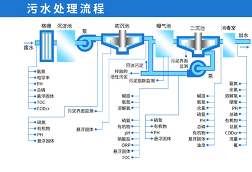 整個過程為通過粗格柵的原污水經過污水提升泵提升后,經過格柵或者砂濾器,之后進入沉砂池,經過砂水分離的污水進入初次沉淀池,以上為一級處理(即物理處理),初沉池的出水進入生物處理設備。