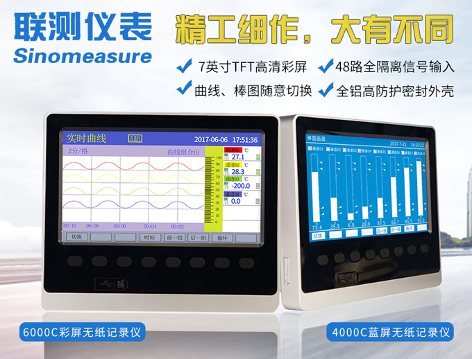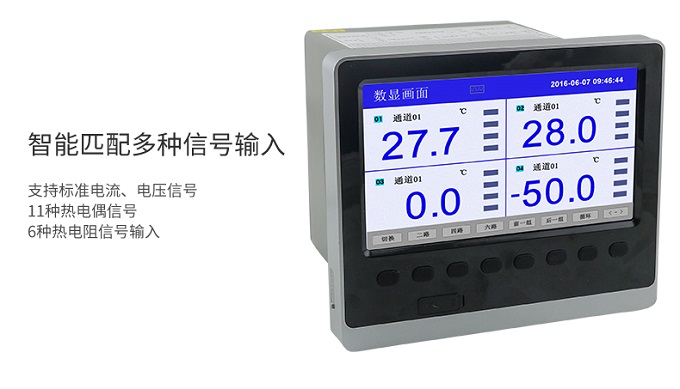 SIN-R6000C系列彩色無紙記錄儀48路多種輸入(可組態選擇輸入:標準電壓、標準電流、熱電偶、熱電阻、頻率、毫伏等)。