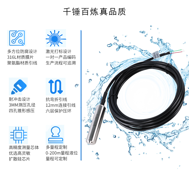 SIN-P261投入式液位變送器由高性能擴散硅壓阻式壓力傳感器作為測量元件,把與液位深度成正比的液體靜壓力準確測量出來,并經(jīng)過信號調(diào)理電路轉(zhuǎn)換成標準(電流或電壓)信號輸出。